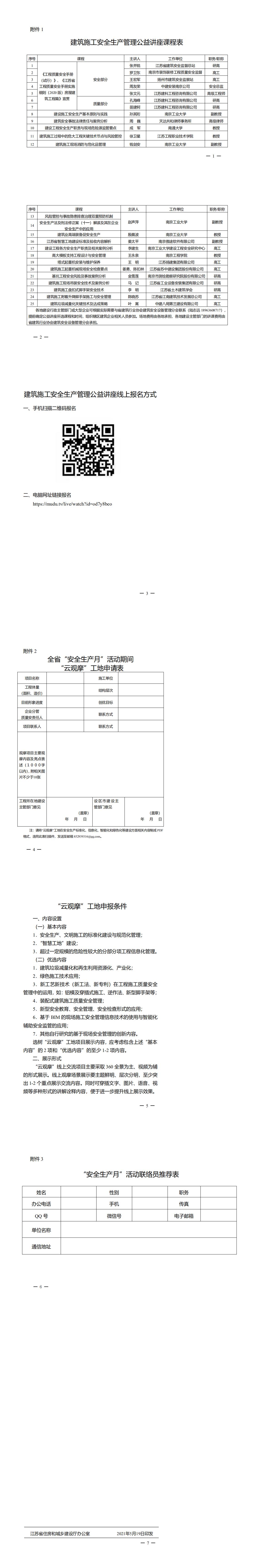 建筑施工安全生產(chǎn)管理公益講座課程表